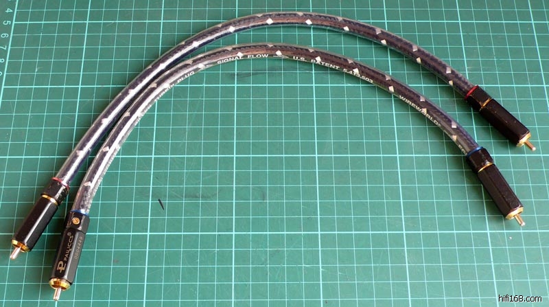 短线,散线长度0.4米,连插头0.43米。采用昂贵的百威BR-109高级RCA头(无氧铜4U24k镀金,光4个头就100块钱了),主芯压接,外屏蔽WBT焊锡焊接。线是以前168上NAN23做的,他用的是怪兽剪线头,但因为嫌太紧,怕搞坏功放接口,才换了这四个头。