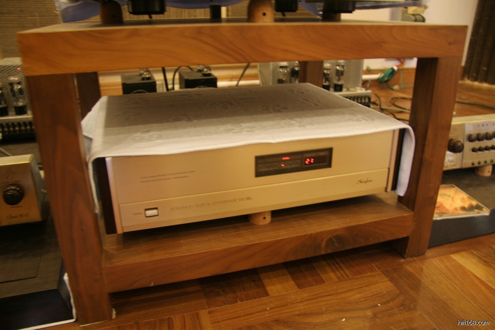 国哥以前是玩成品监听音箱,但听过没有箱体的障板系统后顿开茅塞,觉得箱体声音不能满足他,决定把接近20万元级系统推倒,做一对自己认为满意的作品,所以他不惜工本用进口美松板制作15寸低音号角式障板系统,中音是仿美国西电22A号角.。没有箱体的声音是那么宽松自然、音场宽阔无比、音场的纵深感与乐器的分隔度和全频各段的量感分布及表现力都有较平均,且中低频有力恰到好处,声音生动流畅,音乐的包围感好,看来国哥找到他的理想目标了。