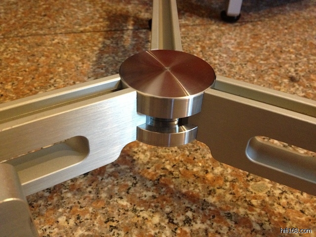 Stillpoints Component Stand,我在官方网上没有找到任何多余的资料,只知道脚的材料是塑钢,中间是不锈钢外壳内包陶瓷珠。Stillpoints用极其简单的结构,纯粹的做好避震,我把架子拿上手大约4斤左右,但看资料介绍可以承重200几斤,看来这个组合架用的材料不简单。