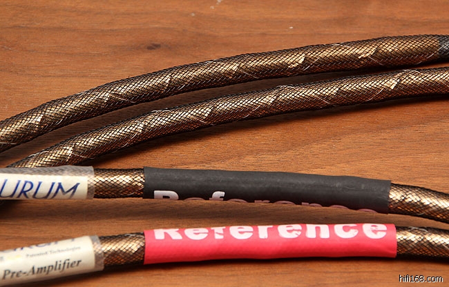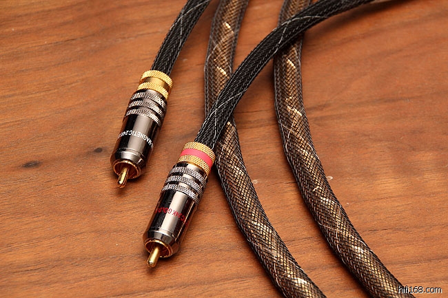 这款是避震梁自主品牌AURUM里面的旗舰信号线,定价7500元,里面采用了避震梁的两项发烧专利:黄金镀膜和藤萝系甲。