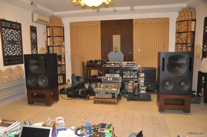 “柏林之声”顶级CD机,“诺丁汉”唱盘,“德律风根”开盘机,STUDER调音台,EMT前级带唱放,“真力”双十二吋监听喇叭,带真力后级单边1200W,PS电源处理器。