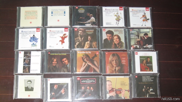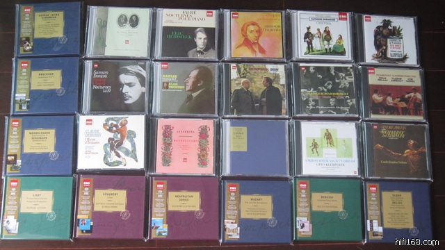 最近看到日版EMI出sacd的消息,有100张(套)。报着买几张试试的心情先买了十几张,听下来非常喜欢,于是一发不可收又挑了当中的十多张买下,后看到欧版又出了,正好与我买的二十多张曲目冲突很少,就买了9套,前前后后一看100张里也买了近半了,这周看到李源和陈晓那里也到了批货,价格比日本买还便宜不少,于是又买了十多张(套)。加上现在还在路上的第三次在日本EMI那买的11张(套),目前已经有了100张(套)中的70多张了,离买齐也相差不多了。