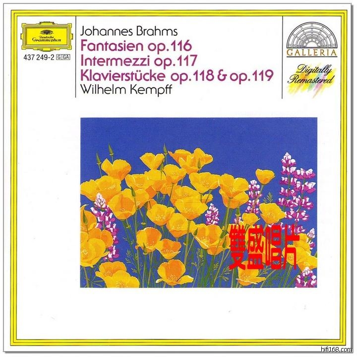 三、现在再版的画廊布拉姆斯只有1张cd,而肯普夫在DGG的brahms钢琴作品有三张之多,必须收全。阿劳谈艺录中作者谈到,如果说阿劳的brahms是声如洪钟的歌剧高手,拿肯普夫的brahms的就如同炉火旁心地纯净的少年在低吟,一个是炉火纯青技惊四座,一个是浑然天然不着雕饰。CD 15