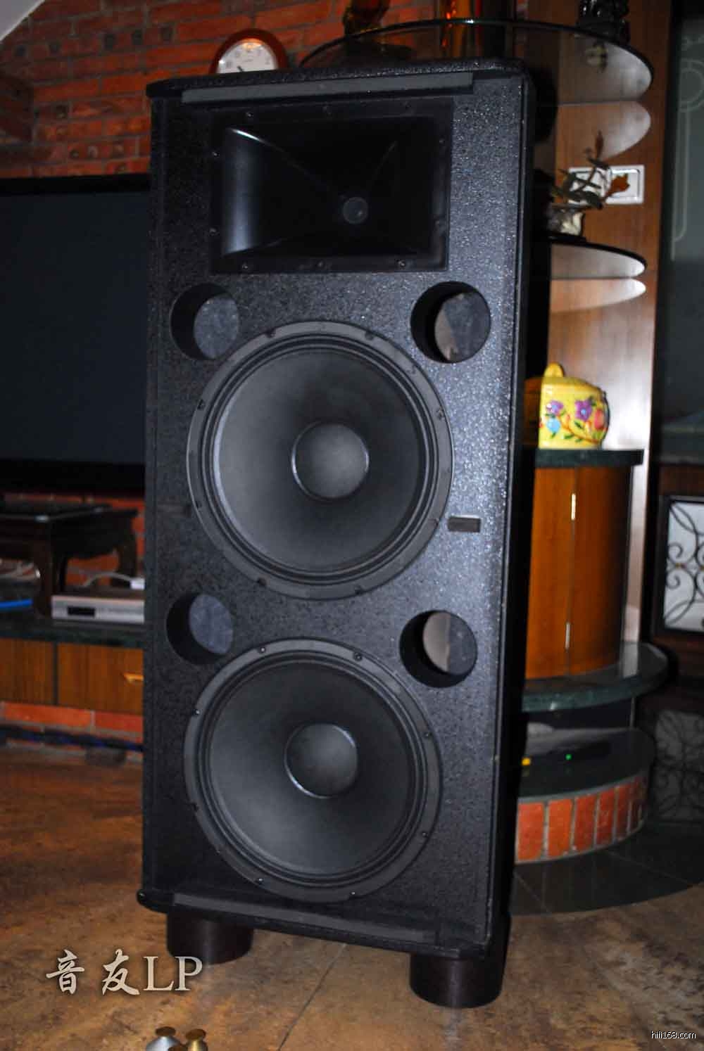 这是笫二次来彭兄家发烧,记得笫一次来彭兄家他玩英国产的雨后初晴老顶M40音箱;这次有些不同了,看到雨后初晴被放到楼上过道里用布盖着,HiFi环境放着一对有号角,双15寸喇叭的落地箱,正是我这次来见式的新玩具,中国的JBL SRX700落地箱.