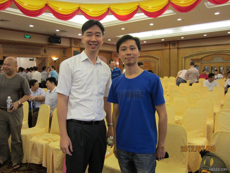 原帖由 波仔 于 2012-7-12 9:55:00 发表那天的活动非常成功,座无虚席。来一张和8爷的合照庆祝一下