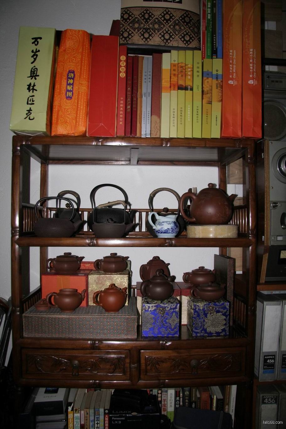 收藏的紫砂茶壶。
