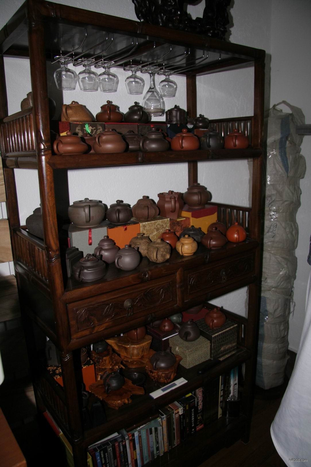 茶叶缸放在第三排中,也可当椅子座,一物二用,一举两得。