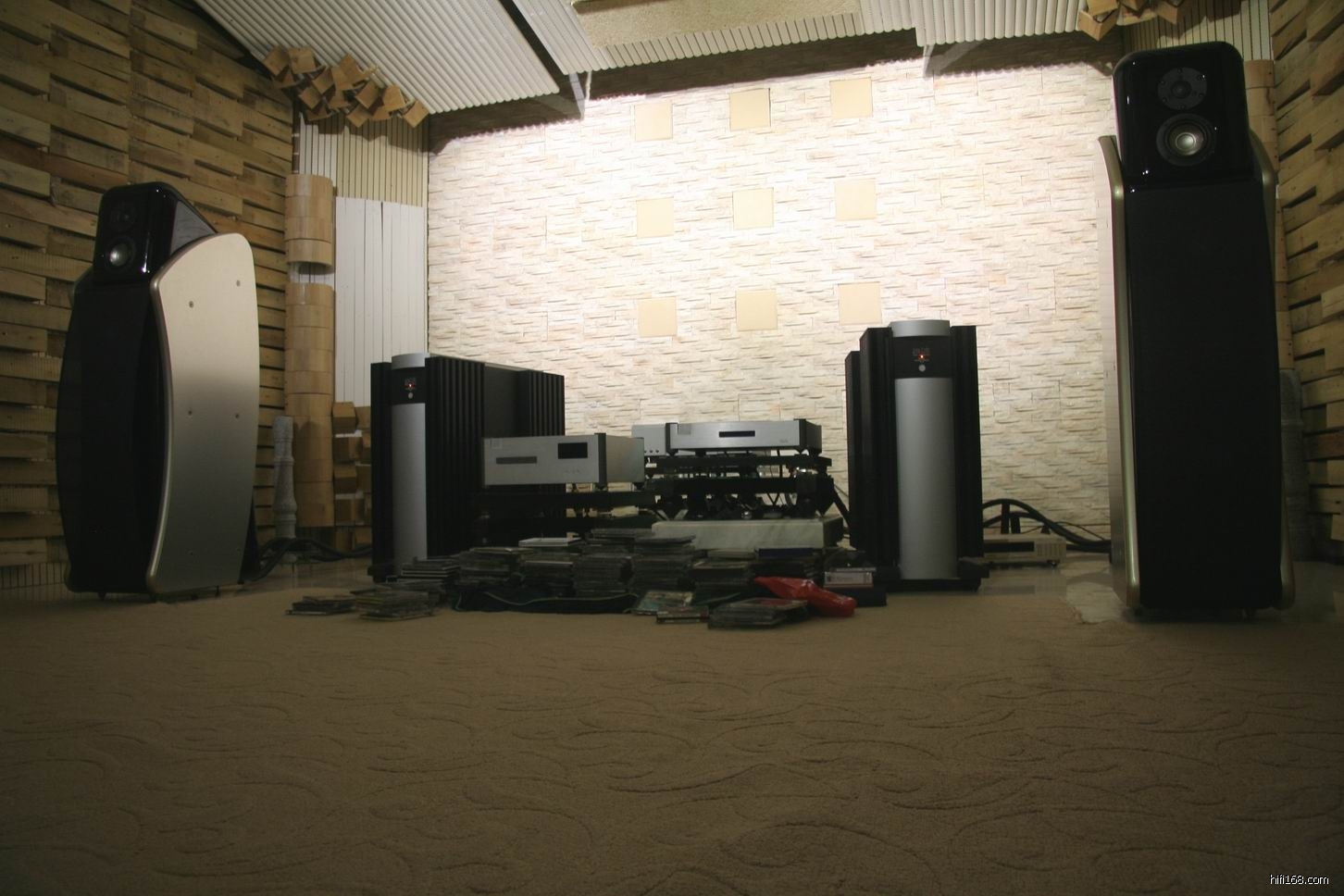 温生对听音室的处理和改造花下很大精力,每个角落可以看得出他的一丝不苟精神,佩服!但可能是吸音和扩散材料使用过多,第一进入时感觉压迫感太强烈,随着音乐的响起压抑才减退。