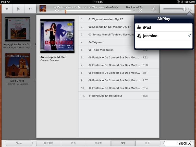 当然你也可以播放ipad或者共享电脑里iTunes的音乐,用ipad的音乐播放器回放,一样非常方便!
