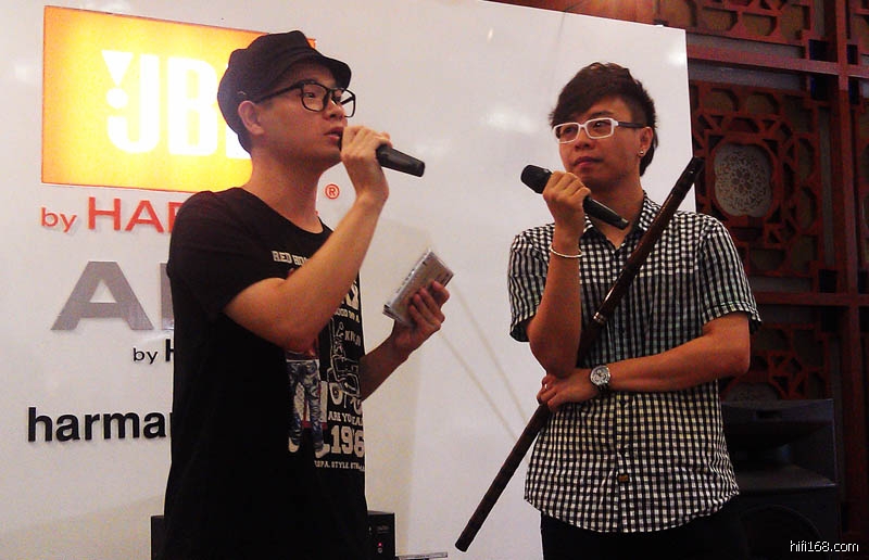 王健霖在哈曼展厅介绍自己的专辑。(2012/9/11 17:40:50 上传)