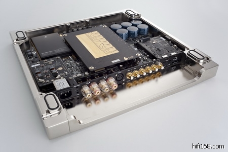 对于D-Premier的后部,我们会发现它不光能接驳传统的信号源,还能接驳现在的高清HDMI信号源,为未来做好升级准备。包括唱头放大、数字输入、高级转盘;其高度的灵活性让众多人对之钟情有加。同时它还具备2.1模式能支持任何主动式低音炮,各种连接界面均可作个人化编程,利用SD卡便可更改输入编程。当你首次看到这部功放,如果不是营销人员告知,相信你定会以为这是一部后级功放,因为在它的身上只有开关键,其他功能均以灵敏方便、艺术化的遥控器操作。一块高清屏除了显示各项内容外,其亮度和显示方向更能随环境自动调节亮度。 不仅如此,音响音乐爱好者更能于他家官网下载最新软件进行升级服务。