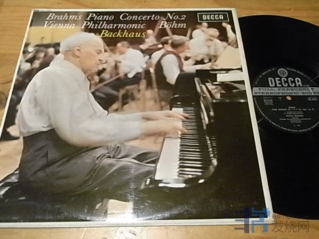 少见名版布拉姆斯第二钢琴协奏曲,巴克豪斯/伯姆,DECCA英国宽标带沟ED2首版,NM—(轻纸袋擦痕及印痕基本不影响),350元