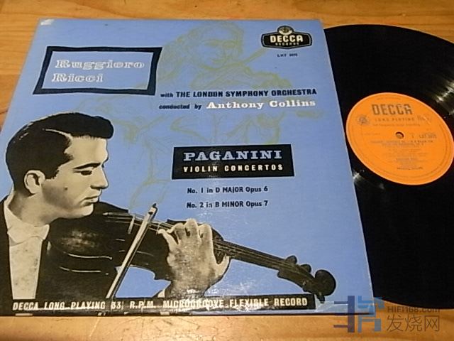少见唱片帕格尼尼小提琴协奏曲第一/二,里奇/科林斯,DECCA英国首版只有单声道,NM—至NM,220元