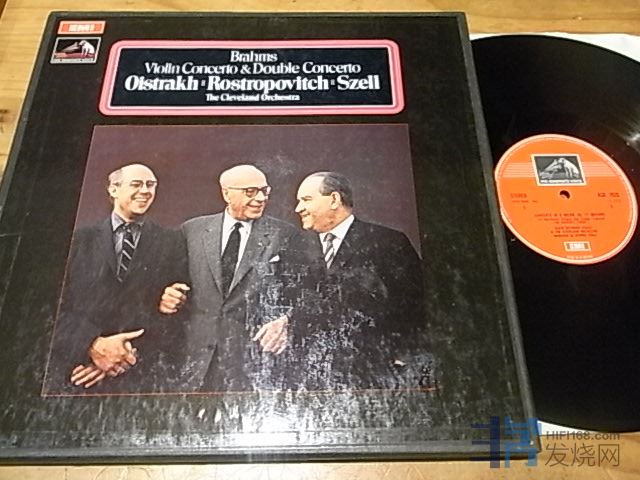 布拉姆斯小提琴协奏曲/双重协奏曲,奥伊斯特拉赫/罗斯特罗波维奇/赛尔,EMI英国,第一张黑白邮票狗,第二张无边彩邮狗首版,第一张NM,第二张NM—至NM(一些轻细纹不影响),盒装2LP160元