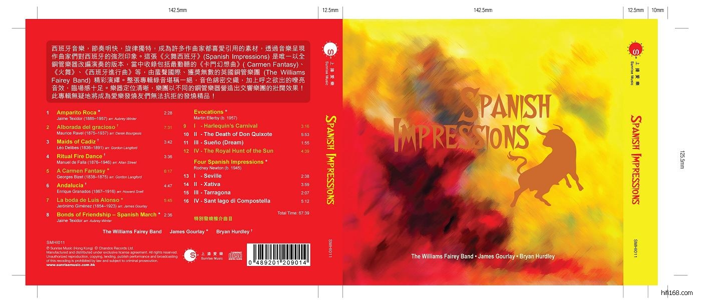 <火舞西班牙> (Spanish Impressions)這張專輯, 特别以全銅管樂器改編演奏, 當中包括最動聽的<卡門幻想曲> ( Carmen Fantasy)<火舞><西班牙進行曲>….,由蜚聲國際、獲獎無數的英國銅管樂團(The Williams Fairey Band)精彩演繹。