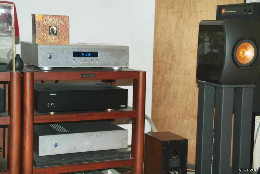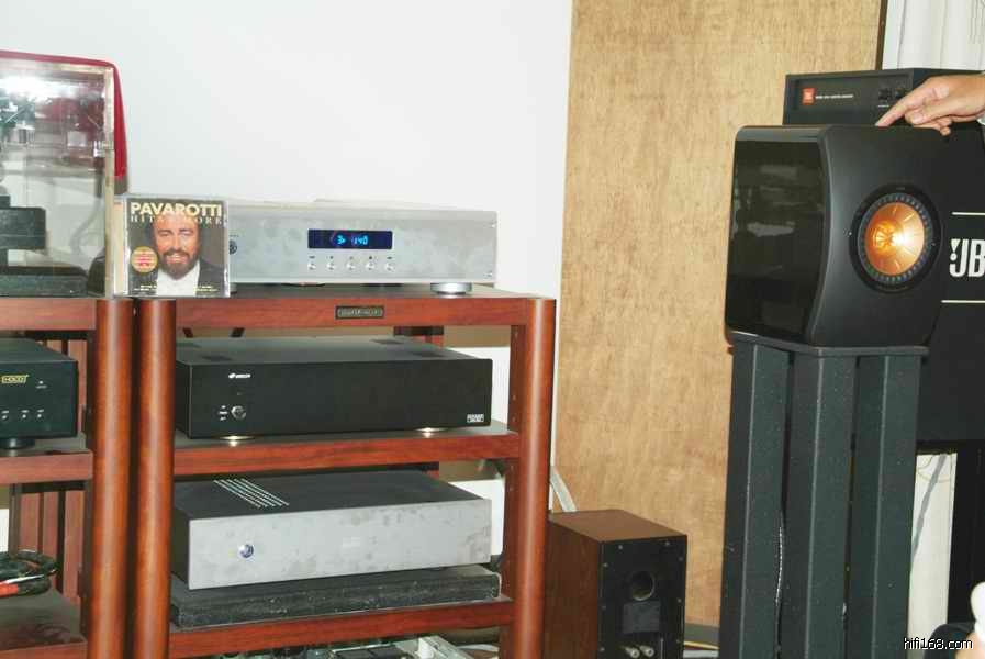 播放“宋祖英”美国肯尼迪艺术中心录制的碟子---------刚刚开始小弟并没有说明是哪一位歌手,一开声,“何评”就问道:这是不是宋祖英的歌???我怎么从来没有听到过那么像真实的感觉!?!?小弟把碟片外壳摆好,不紧不慢的进行拍照,我说:何老师现在能够体会到的现场和声场实体感还有像真度了吧!?“何评”沉闷一下:是啊!果然是听到像真传神。小弟自己感受到:器材如果搭配得当,播放出来的听感是让人感受到现场,这种现场是过后拿钱买不来和再也不能历史重现的,要不然就只能听到音响的声效啦!这两种感觉是截然不同的,自己体会,欢迎扳砖!!!