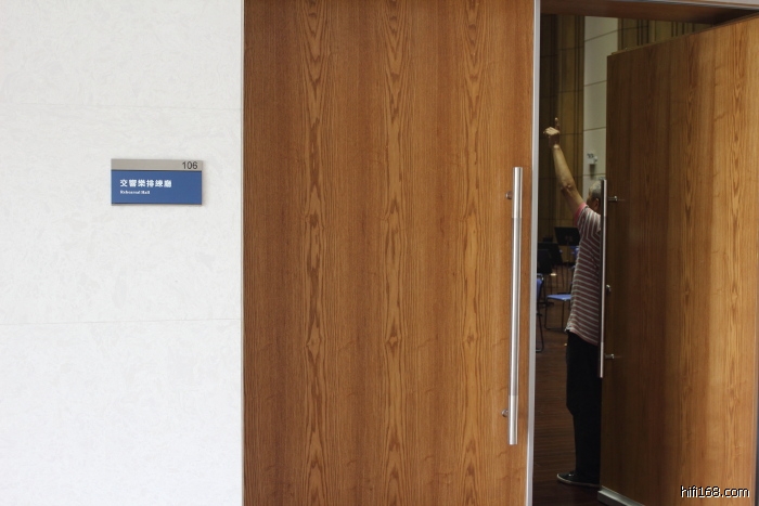 星期日节目后,节目组及几位网友一行9人,去参观了坐落在星海音乐厅旁边的广州乐团排练厅及其录音室。收到广交随团录音师邓奕坚(坚叔)通知,该排练厅的录音室历时一年多的施工最近终于竣工,特别邀请了节目组众人一同前往发烧一番。