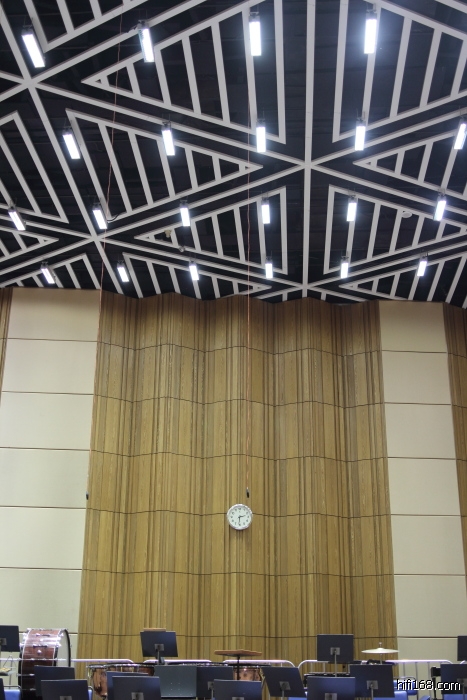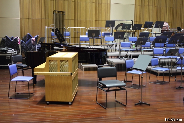 排练厅和音乐厅在声学效果处理上有些区别,排练厅声音吸的比较死,也就是混响时间短,目的是让指挥更清晰地听到每个队员的状态与表现。