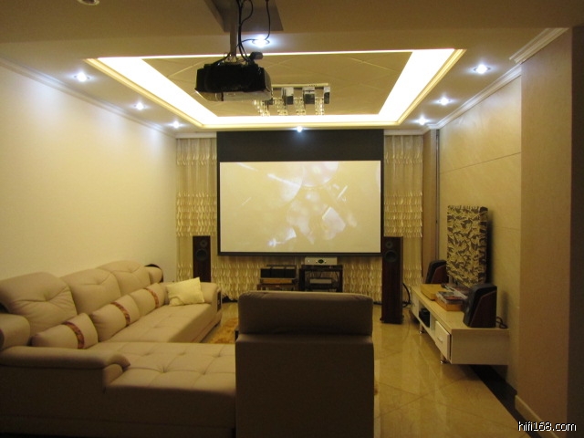 我的客厅和LZ差不多,不过我是半截窗,非阳台,所以坚持摆短边!左、右、天花板全贴上吸音棉,上面是封在石膏板里面,左右是封在木工板里面,占了20厘米的空间,4米宽变成3.8米宽。效果还不错!音箱也是拉到能拉的尽头了,再拉LP不答应了!为了照顾投影效果,也是费了心思摆位!而且LP说了,这么摆放,客厅窗子已经名存实亡。