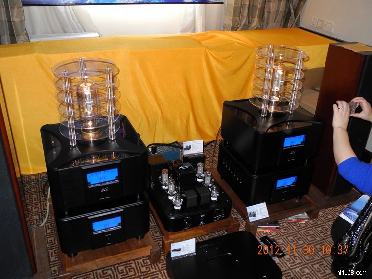 抢滩制作数字播放器的深圳景丰公司经过三年多的麈战似乎终于熬出了头,展房里有不少烧友的驻足围观、咨询、讨价还价以及抓拍镜头。我的一位广州玩胆机老烧朋友,现场买了一台不带解码功能的数字播放器,这标志着传统Hi-Fi发烧友已开始接受这种音源播放形式,CD唱片将再次面临网络下载音乐的挤兑和冲击。