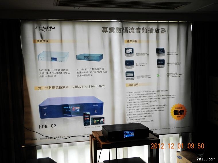 富盛展出的产品很精简,我注意它的以电脑下载音乐作音源形式,还有现场顺带的单拿音箱销售口号......