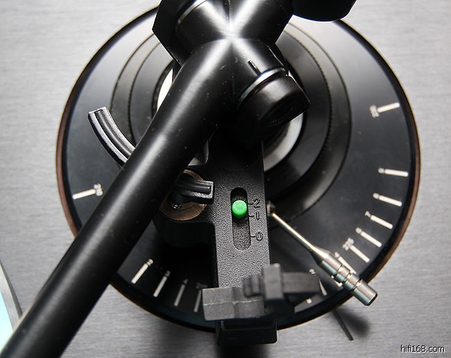 把数值调到1.65左右,这时唱臂就可以乖乖躺在唱片上,不在向外、向内移了。(这个是理论值,下一贴再详细说)