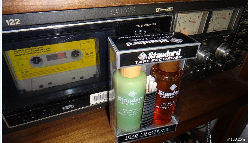 最近搞了几张香港流行磁带,状态不是很好,播放了几张声音变得很朦胧,想想可能是磁带掉磁粉弄脏了磁头,马上找来前几天搞到的磁头压带轮清洗液来清洗磁头、压带轮和主导轴,洗过后棉签黑乎乎的,磁头焕然一新,感觉声音更好了!
