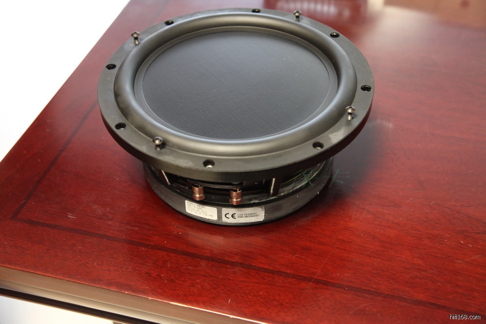6:音箱后面商标为平整亚光印刷,字体清晰,粘贴箱体后不会翘角。(假箱有些用 亮纸印刷)