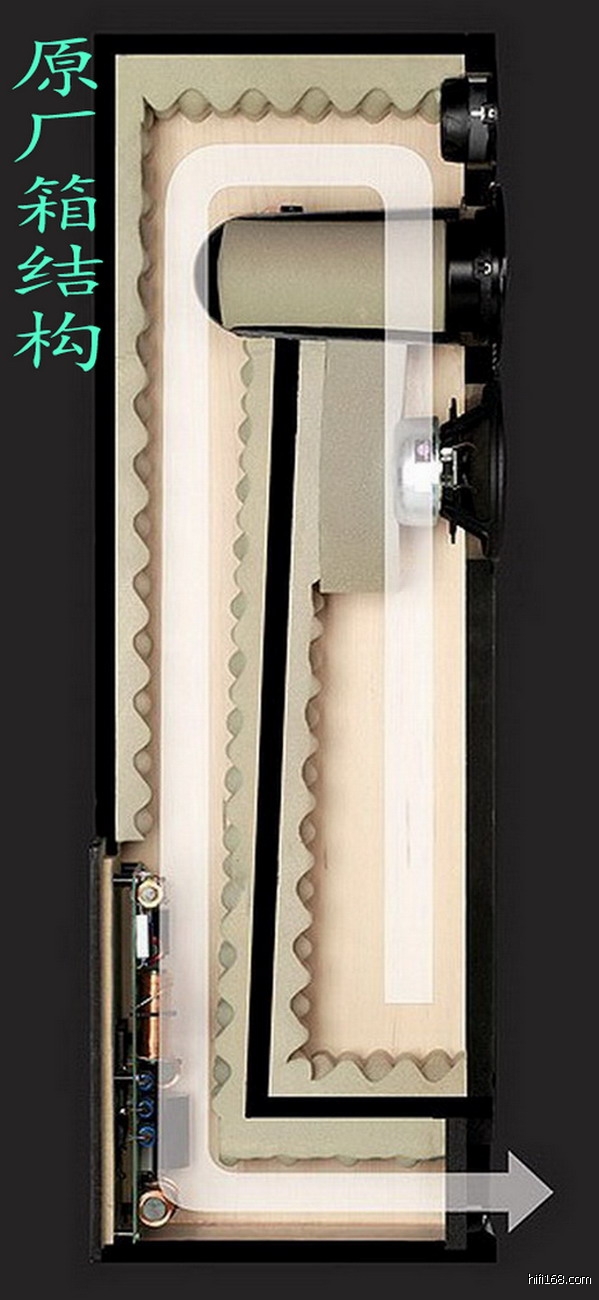 上图为实拆原装 pmc-ob1i 中音,箱内安装原厂一体注塑圆锥形后腔,并装吸音海棉