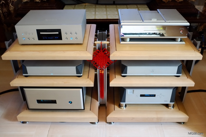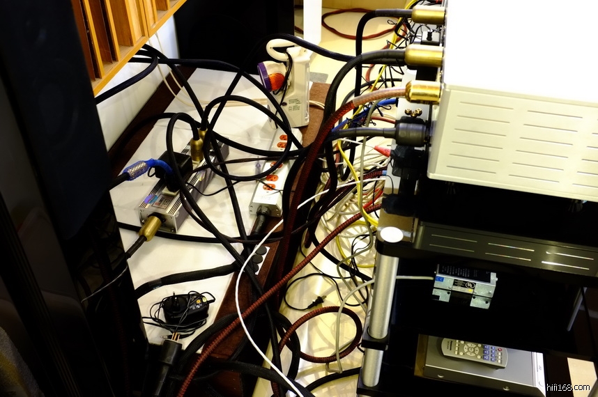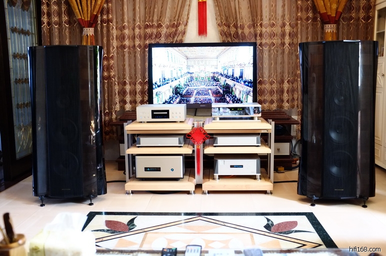 照片上的是他家里的,在工厂还开辟了一个50平大房间,那边就频繁进出器材,大规模试听。家里的就是欣赏的,不是试听的,就相对稳定。可是,CD机和前级,已经列入更换计划。