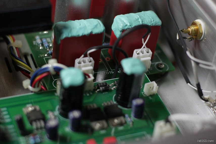 电源线是单芯的单晶铜,我买了两种颜色红色和绿色,把原来的多股软线换下。变压器的接线切断后焊好然后上了三层套管。下面照片是连接好后的样子。
