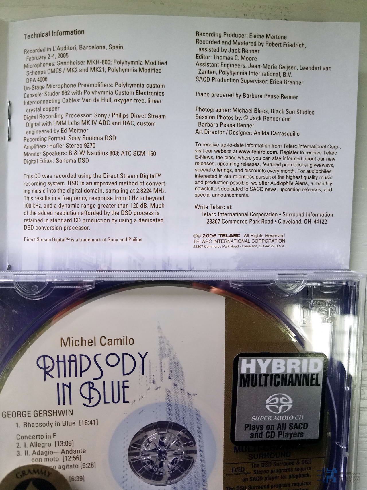 蓝色狂想曲SACD,DSD录音,正相录音
