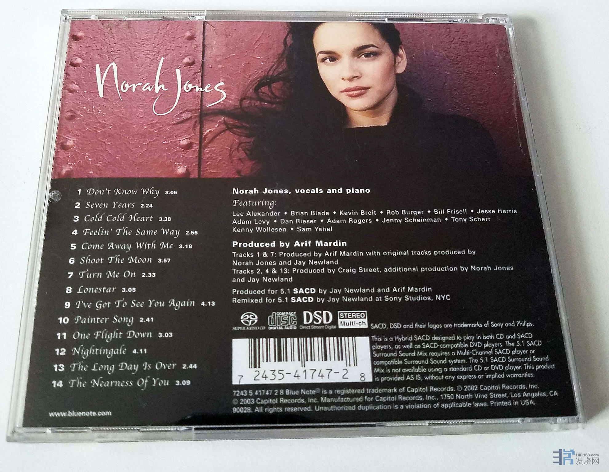 诺拉·琼斯的第一张专辑,CD圣经推荐,SACD是SONY公司制版的,居然是伴奏音乐反相,人声正相!