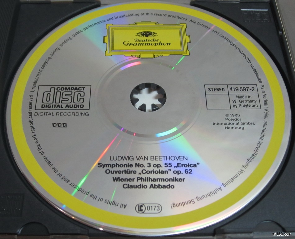 DG唱片大黄标GH高价版:阿巴多指挥《贝多芬第三交响曲》西德无字满银01首版(CD95新,仅有几丝使用浅痕,无掉银,有几个对强光才可见的透光针尖,完美播放)210不议价