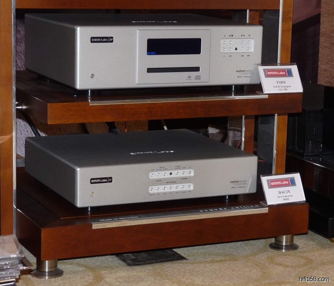 在举世闻名的HIEND胆机制造商中占有一席之地的法国JADIS,这家1983年由 AndreCalmettes创办的法国公司,在电子管功放上孜孜不倦,推出一个又一个极品电子管放大器。此次展出了高级的JP800加JA800SE电子管前后级,其中,JA800SE后级采用了豪华的四大件设计,提供纯甲类300瓦的无尽动力,可以驱动世界上绝大多数高级喇叭,音源则为美国EMMLABS的TSDX转盘加DAC2X解码。