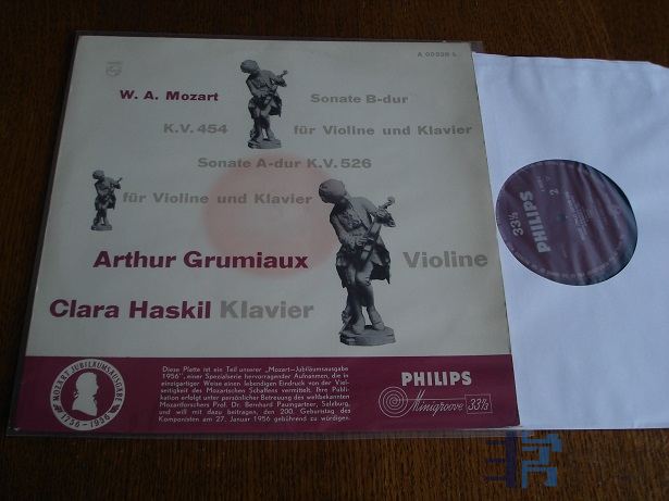 1223-MOZART小提琴奏鸣曲K526和454。HASKIL钢琴,GRUMIAUX小提琴。这是两人在单声道时代的录音,无立体声版本。封套NM-,唱片NM。