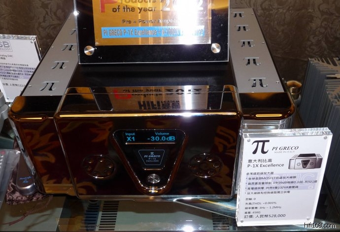 ,前级放大器为猛料制作的P-1XEXCELLENT,国际定价28250英镑(26.3万人民币),现场标价52.8万人民币。