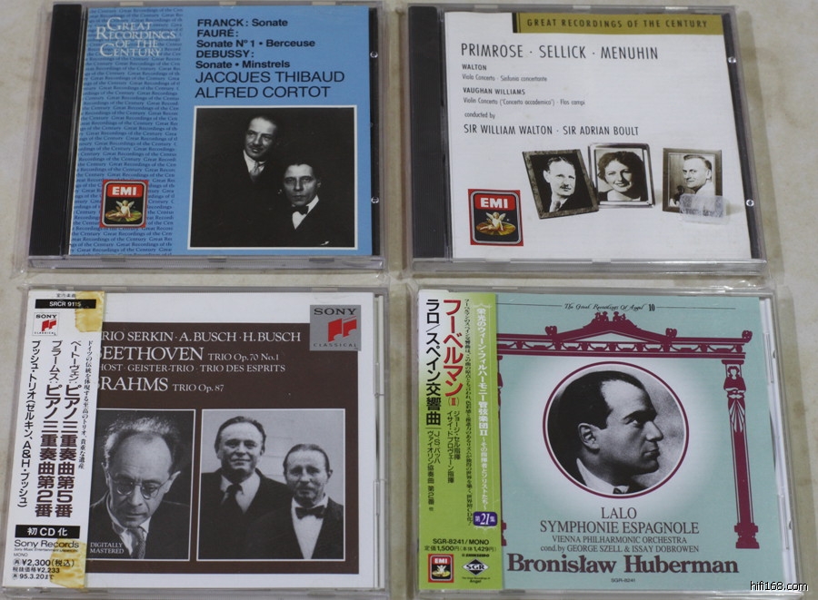 [table=98%][tr][td=1,1,725][color=#ff0000]47、EMI 蒂博、科尔托:弗朗克、福雷、德彪西小提琴奏鸣曲 USA CAPITOL JAX 无IFPI 盘质良好 已出[/color][/td][/tr][tr][td]48、EMI 梅纽因:威廉姆斯小提琴协奏曲 普利姆罗斯:沃尔顿中提琴协奏曲 UK无IFPI 1条1CM左右浅痕 140[/td][/tr][tr][td]49、SONY 日本初CD化 布什、塞尔金:贝多芬第2、5号钢琴三重奏 无IFPI 盘质良好 120[/td][/tr][tr][td]50、EMI-新星堂 胡贝尔曼:拉罗西班牙交响曲、巴赫第2小协、小无 有IFPI 有几条细痕 150