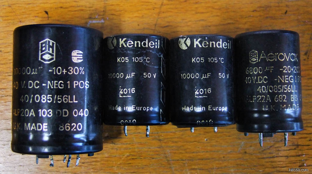 现在日本化工和美国化工的产品非常多,世面上的二手电容也很多,但是日本化工和美国化工的电容的使用寿命普遍不长,而且使用温度的上限一般在85左右,大家在购买这些产品时候一定要小心。我在一些二手的网站上看见一些黑心的商家居然把一对普通的日本化工产的400伏400u的二手电解电容卖到30元一对,居然还有听友去买,想这样的电容其实不会超过2元钱!