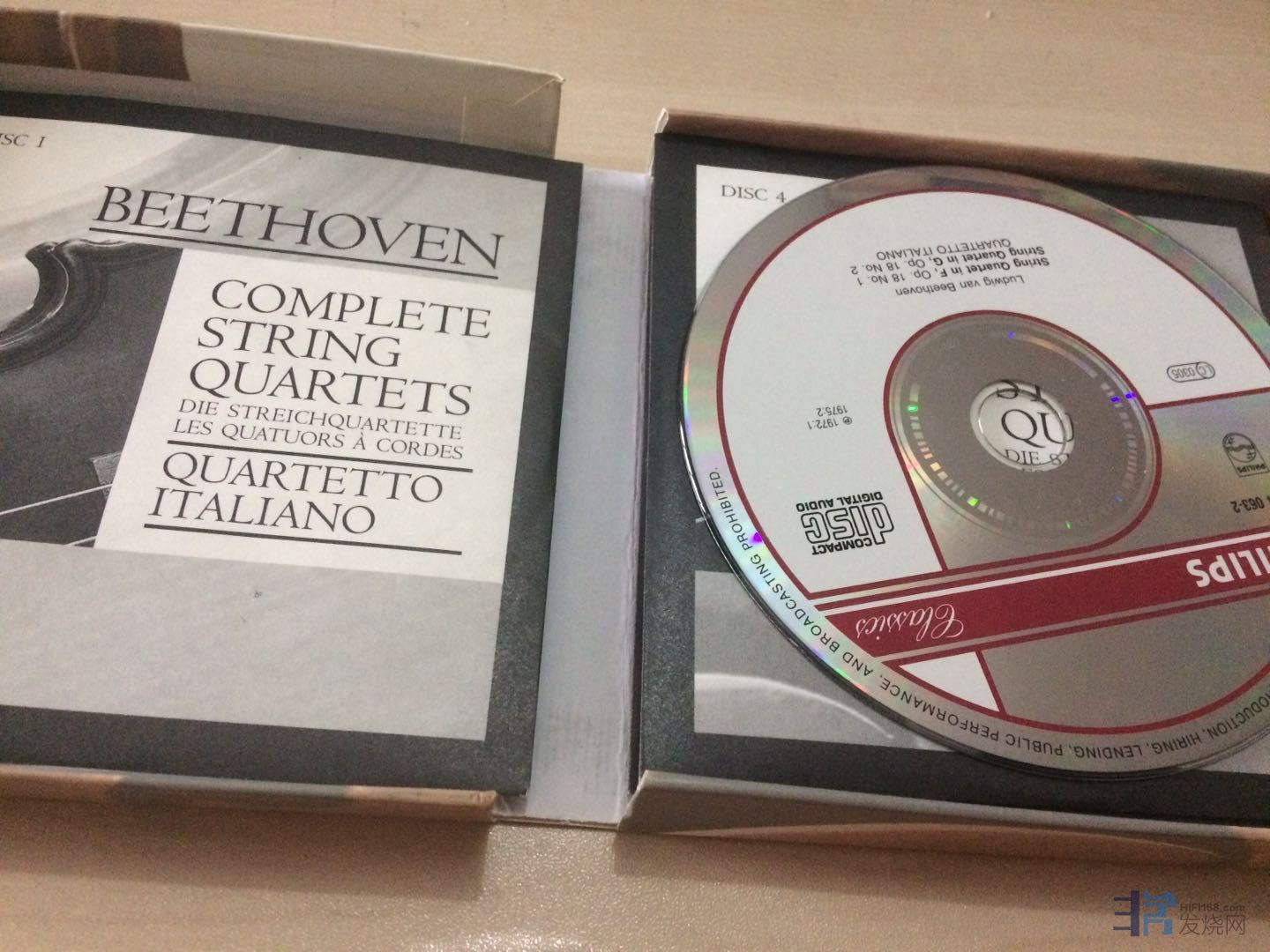216.PH,贝多芬弦乐四重奏全集,QUARTETTO ITALIANO,经典演绎,购于中图,10cd环保装,全部是PMDC,96年的首版,其中第2张不小心碟边缘有些擦痕,其余9张近新,650元。