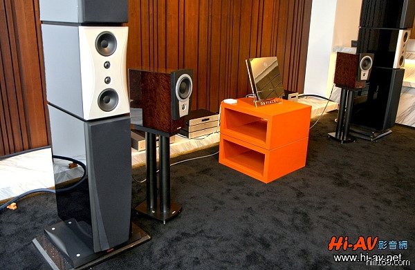 展樂一樓大廳空間原本是以Dynaudio Evidence Master旗艦喇叭(外側)為主的音響系統,此次為了Devialet的發表及展示,使用了Dynaudio Confidence C1 Signature書架式喇叭發聲。