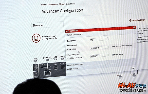 透過個人電腦連線,就可對Devialet的設定及操控輕鬆掌握,這裡是無線連結的「Devialet名稱」、「網路SSID名稱」及「連線密碼」等設定之頁面。