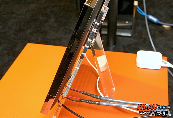 發表會現場Devialet特別以一個訂製的壓克力支架來展示,從這個角度我們可以看到Devialet極薄的機身,以及它與壓克力板之間微小的間隙。沒錯,Devialet除了平放之外也可吊掛在牆面上,它與背牆之間就只需要這麼小的間隙,地球上再也沒有其他比Devialet既不佔空間又超級好聲的音響器材了。