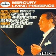TAS名碟,哈里 亚诺斯组曲的低音非常棒,不过第四轨的“The Battle and Defeat of Napolean”的演绎显然不如弗里克塞(Fricsay)权威,那段号的乐句交待得也不如弗里克塞(Fricsay)清楚,录音当然要好于弗里克塞的DG版。巴托克的匈牙利素描,也不如多拉蒂的老乡--莱纳演绎得权威,“熊之舞”速度稍快了些。我发现多拉蒂在表现灵动的动物时很有优势,比如火鸟,夜莺(水星版要比莱纳的living stereo天方夜谭那张更加吸引人)这些,偏快的速度加上水星通透清丽的录音,效果很出色;但是在表现熊啊,老牛啊(图画展览会),他的速度还是偏快,就不如莱纳那么权威。