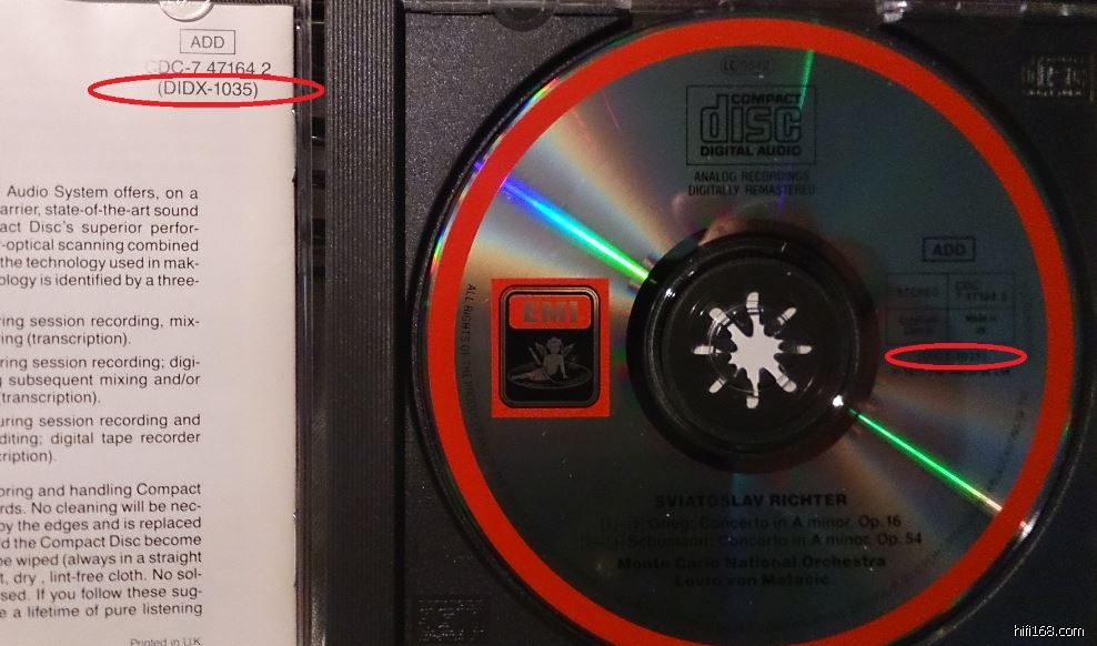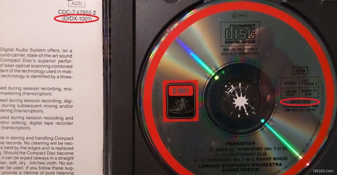 普罗科菲耶夫这张比较有意思,你的是英版,我手里是德版全银圈,但编号是一样的,也有DIDX1001。但我的小册子是美国印刷的,所以我觉得是因为数量原因,Digital Audio Disc Corporation USA请英国和德国的压片厂代工的,所以加上Digital Audio Disc Corporation USA的DIDX编码。