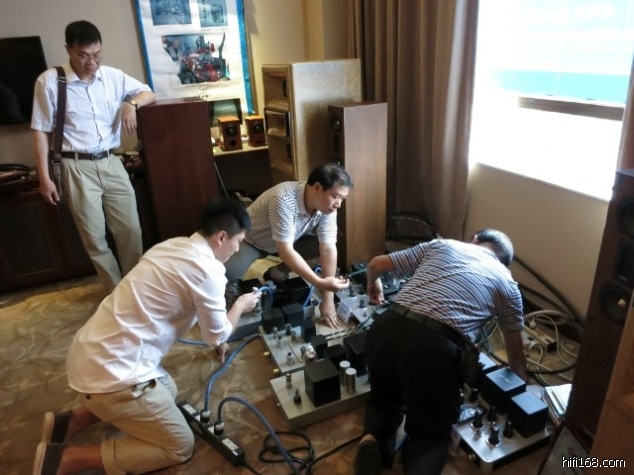 交流聆听比试心得,后排左一为程国平兄、右一为6V6胆机设计师王伟涛老师(2014/6/2 16:37:57 上传)