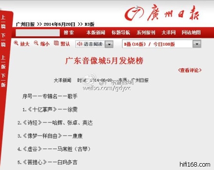 广东音像城2014年9月发烧天碟销售排行榜单已在10月5日《广州日报》B5版:娱乐·情报评出。