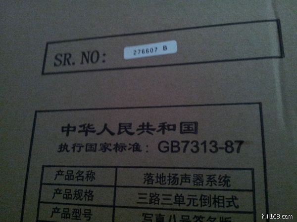 音箱纸箱外面的信息一目了然,编号(276607 B)清清楚楚,如假包换。
