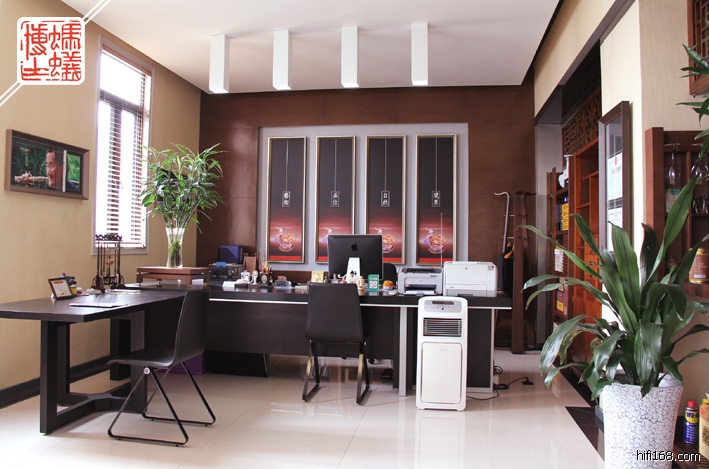 我的办公室面积是将近55平方米,纯粹商业空间,层高在4.2米以上,在装修时我就一分为二,用将近25平米来作为自己发烧听音(大约尺寸:6.8米X3.6米,空间装饰高度2.9米左右),剩下的30平米(空间装饰高度3.2米左右)作自己日常上班工作和发挥创作的空间。听音室弄在办公室,最大好处:器材工作可以发挥到极致,完美服役,随时可以聆听,而且声音想多大就可多大,完全由自己随性控制,简直可以不担心影响别人与否。
