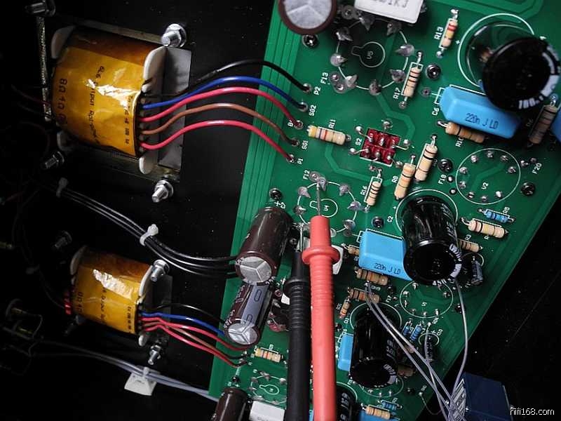 整机虽然为全交流灯丝供电,但由于线路分布排版十分合理,因此即使本人并未采用灯丝交绕连线手法,其信噪比仍然非常之高。将音量旋之最大,耳朵紧贴低、中、高三个喇叭单元,也未耳闻到本底噪声。